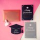 一份商品:1张毕业帽卡片+1张毕业书卡片+2个信封(珠光半透+半透信封)+2个贴纸