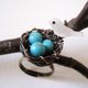 材质: 铜线(氧化仿旧处理)、贝壳小鸟、仿土耳其珠(绿松石)