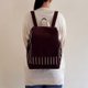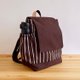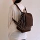 品名:手工咖啡色X白线条绵布缀有牛皮后背包