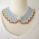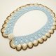 雅致、不俗的手工蕾丝领饰。该款商品由钩编蕾丝及串珠蕾丝技法所制成,珠材采用日本玻璃小珠,古典的蕾丝与层层雅致色调的玻璃小珠,为此蕾丝领饰带来雅致、脱俗的手创美感及怀旧的浪漫。