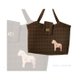 使用夏季毛料来制作包包,就是夏季西服的布料;摸起来的触感很顺滑舒服,有种高级精品的氛围出现了。由于布料较软,就采用很硬挺的衬来制作;也是这个缘故,镶嵌上去的小木马就更加的凹陷立体起来。内里则是使用轻软铺棉布制作。内敛的花色加点亮点,就不会太过严肃;也让这包包更适合各种场合。