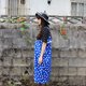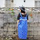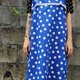Description: (Vintage)宝蓝色白点点棉质无袖古着洋装