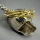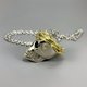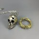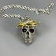 这款荆棘骷髅项链采用珠宝级白铜与黄铜荆棘制成。此件作品保留了白铜与黄铜的真实原色,未经任何电镀处理,您可以随时依喜好进行抛光保养。