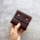 品名:手工缝制酒红棕色牛皮三折零钱短皮夹