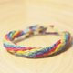 以天然麻绳制作,多彩的风格带点民族风的气息,手感新体验,适合夏天的民族色彩,结尾处可依个人松紧度打结,让你穿戴更方便喔! 手绳制作仅限手一圈实际17cm以下