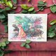 画作灵感来自日常的事物,以动植物为创作素材,描绘丛林找所关心的各种议题,每张作品皆搭配中英文双语的叙述及细腻的设计编排,纸材选用具手感的厚纸或丝绒文的表面肌理,是明信片也是卡片的功能喔 !