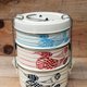 手工彩绘的不锈钢野餐盒,使用无毒颜料绘制,设计的图案为印度传统图腾变形虫简化呈几何图案