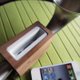 原木主体背面下方电源线槽,可放置电源线当手机座充使用。