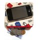 可爱的随身小包包,可放零钱、钥匙、信用卡、iPhone...等,各式随身物品。 材料:棉布 尺寸:13cm x 11.5cm
