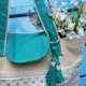 北欧风格超好看绿色图案流苏包包/手提包/肩背包/全棉帆布/手工制