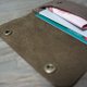 短夹的零钱包设计也具巧思,摆脱一般拉链、盖子不让零钱掉出的方法,改用一个简单的拉出式粗犷马鞍皮将多余的皮革向下压,达到同样的效果,确显得更简易特别与众不同。