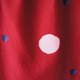 小狗跑在满满红色上面,有白白山影、蓝色星球,和可爱的粉红泡泡。