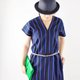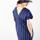 商品特性:前V后V的蓝色直条纹洋装 附上口袋 连口袋里面都是可爱的条纹 搭配腰带又是另外一种风格