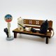 内容:公车站牌, 木板凳, 等待-黑猫, 等待-花猫