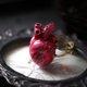 *** The ring is designed to be real anatomical of a heart shape, and its vein details. All the heart part is painted by hand in red and white color. The heart is attached to thorn in round shape to wear for a ring. The thorn is golden color of brass material.