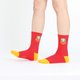 “达摩不倒翁球袜”平摊时是一双透气吸汗的舒适棉袜,洗涤完毕后,将两只袜子交叠后从底部卷起,卷至开口处再将其中一支袜子的开口翻开来包覆住整双袜子,调整一下形状,一尊达摩不倒翁就完成了!