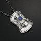 明月出天山,苍茫云海间。 长风几万里,吹度玉门关。 汉下白登道,胡窥青海湾。 由来征战地,不见有人还。 戍客望边邑,思归多苦颜。 高楼当此夜,叹息未应闲。 单颗 0.70+克拉蛋面切割蓝晕月光石; .925 纯银; 尺寸约为 30.00mm X 20.44mm。 作品含 16 寸或 18 寸 .925 纯银项炼; 《 捏造的诗歌 》- 2011 Weca Wang 年度杰作。
