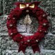 品名: X'mas圣诞节酒红色水晶华丽奖章手工花圈