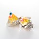The tip of the Blue Bijou, is Pentagon-shaped clip type earrings that confined the pink lame and orange shell and Aurora with crystal resin.