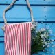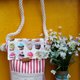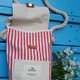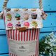 北欧红白条子针织布配可爱杯子蛋糕图案真皮扣大棉绳包包/肩背包/全棉帆布/手工制