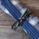 古布收纳袋缝制 7 个格子,可同时将另一伴或全家人的餐具一起收纳,将收纳袋卷曲后,再用侧边的布绳绑住即可,外出携带非常便利。