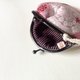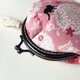表布 粉色图样、里布 黑粉线条、口金 镍黑、蕾丝缎带随机。
