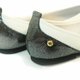 高品质真皮鞋垫、严选高级合成皮革、内里、高等乳胶、高系数独家美人鱼橡胶防滑底、独家五金饰扣、三层手工缝纫滚边。