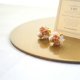 - 米色的棉珍珠搭配花朵形状的复古捷克串珠、 天然石桃色水晶的珠宝耳环。 沈着调性的粉红色,戴在耳朵上 增添华丽色彩。