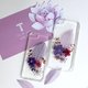【1】手机壳是全透明包四边的软壳,手机壳表面会灌一层宝石胶把花材封起来,花材最终会相嵌在中央,所以不用担心会掉落问题。有些花朵比较厚或有重叠之处,有可能轻微凸起摸得到(例如:雏菊蕊/飞燕花蕊/满天星)