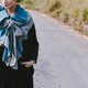 围巾名称:蓝蓝深海--拼接丝绒松萝造型设计围巾