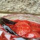 晶莹剔透,开罐后随即闻到的是淡雅的草莓果香,不添加合成香精及防腐剂,因此果香自然不刺鼻,刻意保留草莓果肉,每一口都能吃得到草莓的美好滋味。