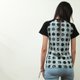 此款T-Shir采用双色设计;远看T-Shirt上有许多圆点,但近看细节时会发现每个圆点里面住着机器人(滋滋)、复古的飞碟以及火箭,设计师在图案设计加上了手刮的复刻感;穿在身上更显复古!