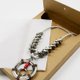 项链组合了互相对比的材质,在古旧的织皮绳之间嵌入亮光的金属环