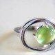 圈成略带椭圆方形线条(纯银),与葡萄石做不对称的爪镶搭配,