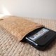 水松布料印在一块麻质纱布上,稳固而不易脱落,内面缝上具保护性的棉质布料,贴心保护手机