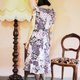 Description: F1109(Vintage)黑色底紫粉红白色花朵棉质无袖古着洋装(婚礼/野餐/派对)