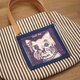 蓝白条纹日本布料加上可爱狗头图样装饰