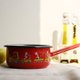 请勿使用含有金属材质的刷布或含颗粒的洗剂清洗珐琅制品,以防刮伤表面釉料。珐琅锅具使用后如有烧焦现象,请勿使用工具强力刮除。