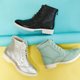 以中筒靴与春夏色系的趣味冲突设计为主轴格外讨喜!经典雕花系带鞋面,融入白底时尚元素;纯白混搭色彩的玩色,鲜明视觉感十分俐落却不失亮点。恣意玩转比例穿搭,突显个人风格,让妳踩着时尚步伐轻松展现女孩自信风采。