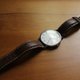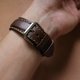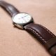 手工缝制表带,使用植鞣皮革制作,表带内部埋入皮革制作出立体的效果