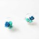 - 文艺蓝绿色系小雏菊干燥花水晶玻璃球耳环 可换夹式