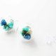每个玻璃球耳环都含4朵文艺蓝绿色系的小雏菊。