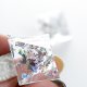 大颗的粒子亮粉封存在透明树脂里的金字塔型耳环里