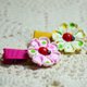 由双色点点缎带作成的和风款,虽然相当耗时费工却很典雅,再搭配颜色鲜艳的瓢虫,小巧又可爱。