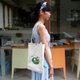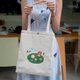 使用纯棉厚磅数的布料来手工绢印图案加上刺绣点缀