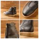 靴子注入重磅感厚底元素,一体成型的防滑生胶大底尤其为设计重点,夹层立体真皮缘条,作工扎实。
