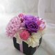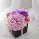 紫色系康乃馨+玫瑰,配上粉色千日红