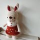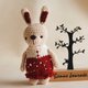 布棉花100%独家的毛线娃娃。穿着大红洋装的小兔子