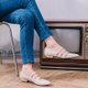 另外,也不建议长期穿用同一双皮鞋,无论妳如何喜爱它,都要给它适当的时间休息。因为高级皮鞋全部采用天然皮料,与皮肤有着相似的特质,所以穿过2-3日后,更换下来,让松涨了的皮面纤维回缩还原,舒展折痕,挥发鞋内湿气。