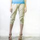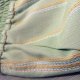 这日本面料特别精细. 不是一般的印花条子. 是用上3色交织而来. 底色是粉绿和橙色的交织. 条子图案是白色和橙色的组合, 断断续续的像车缝线效果. 此外我们用上比一般粗的缝线, 让裤子的骨位和线条更立体和明显. 腰贴是柔柔的粉红日本全棉布, 侧骨从腰部两侧顺延至前中, 懂时尚的你一定看得到. 裤脚的橡根线是完美的配色, 还有精致的脚边, 你有留意到吗?
